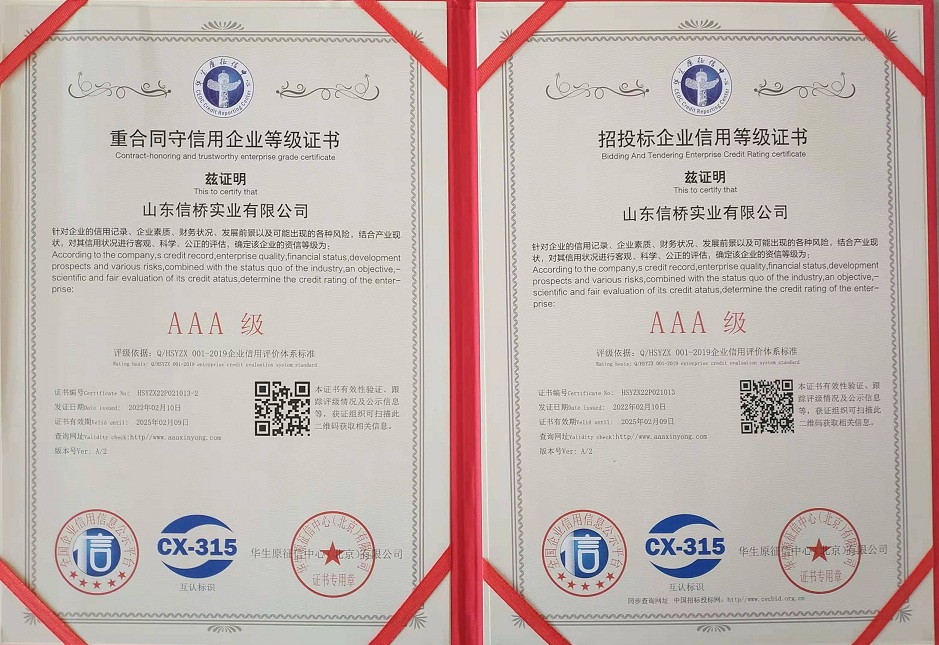 重合同守信用企業(yè)等級(jí)證書(shū)