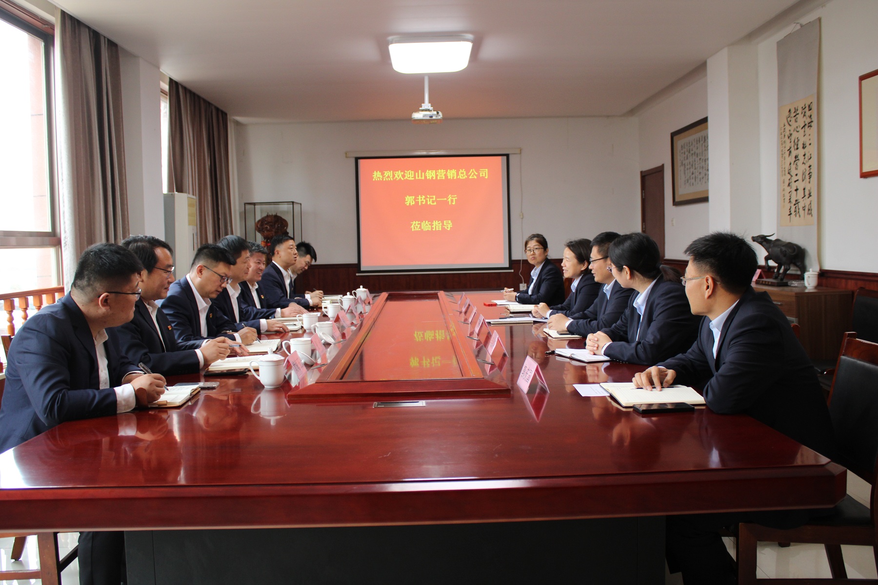 郭書記一行與信橋領(lǐng)導(dǎo)在二樓會議室進(jìn)行座談,雙方就貨價、質(zhì)量品控等問題做了深刻交流,重新確定了山鋼與信橋的戰(zhàn)略合作關(guān)系,雙方就今后深化合作,達(dá)成一致意見。