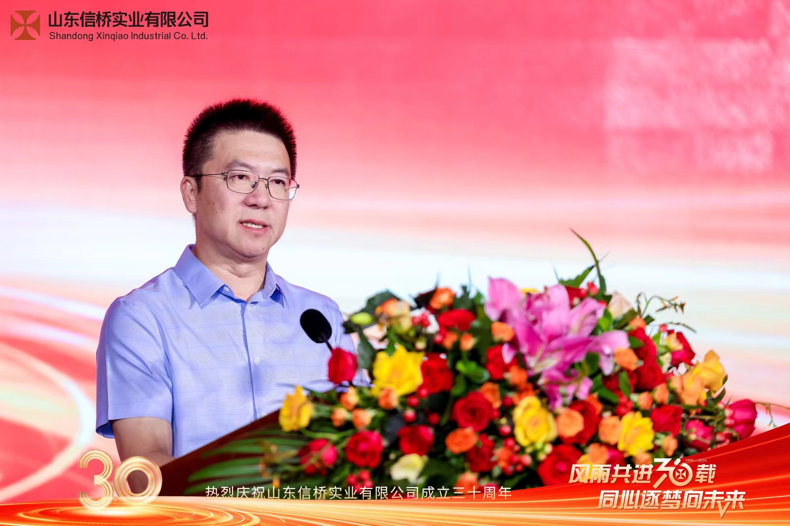 2024年8月8日,信橋公司舉行“風雨共進30載,同心逐夢向未來”30周年慶典活動。信橋領導和受邀嘉賓上臺致辭,為慶典活動拉開序幕。